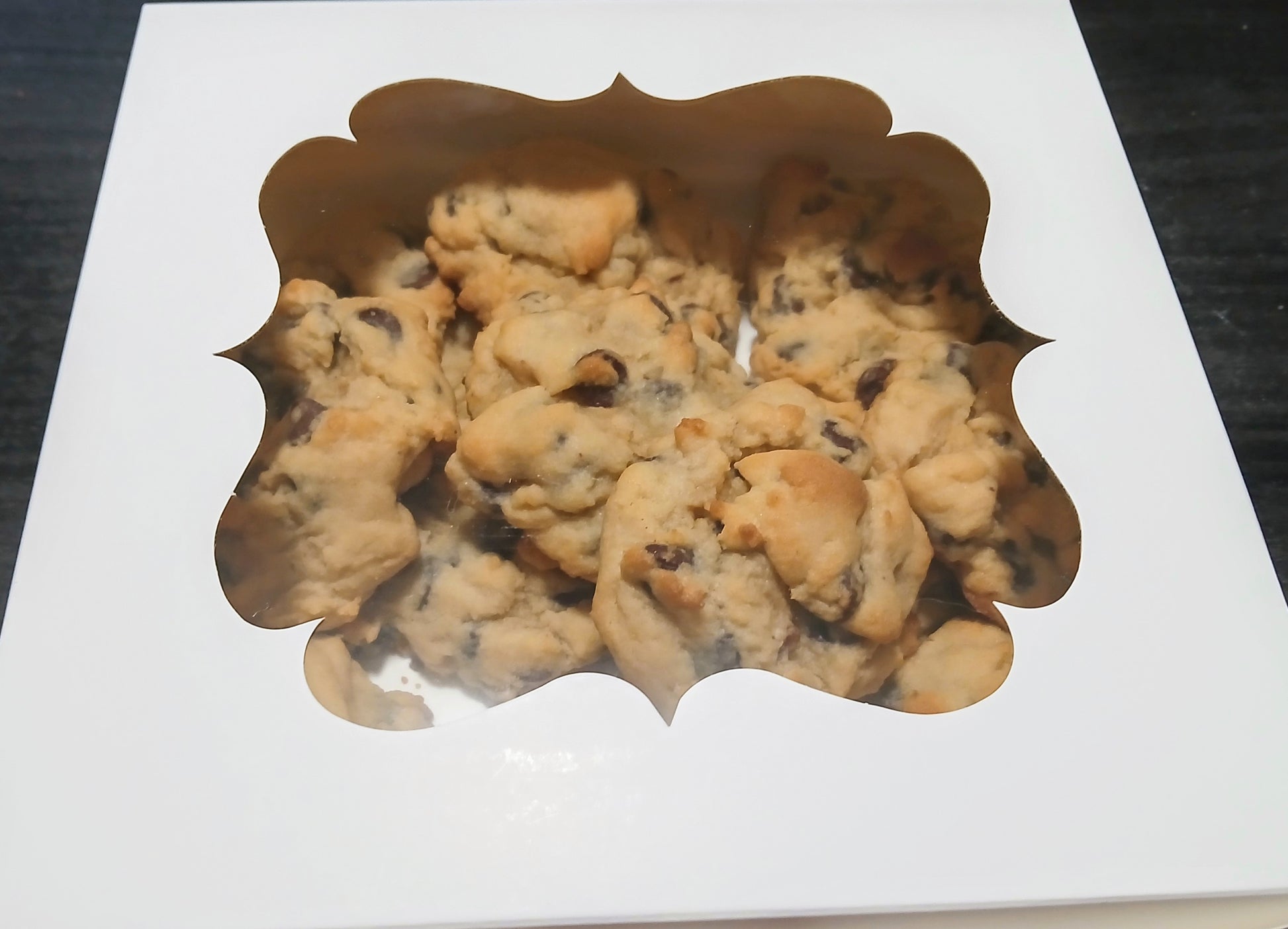 Indulge in the homemade chocolate chip cookies made to order. These fresh baked treats are free of bioengineered chemicals and toxins common in most foods today. The cookies come in a pack of 13 (baker's dz), each weighing 2 oz, with a shelf life of 1 - 2 weeks from the shipping date. Enjoy the convenience and freshness of these homemade delectables straight from our oven to your doorstep.